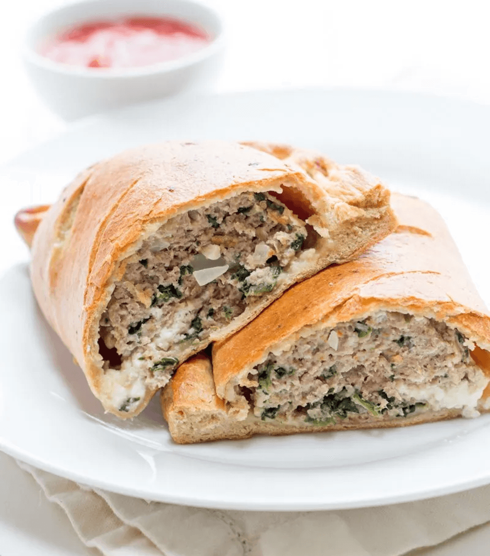 Stuffed with turkey, spinach, and cheese, these calzones prove that hand pies aren’t just for traditional pizza flavors. Don’t forget the marinara sauce for dipping!