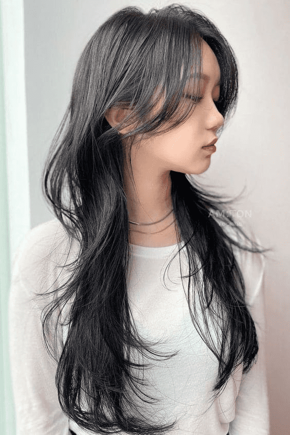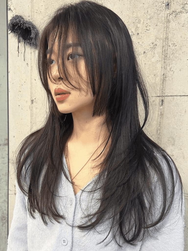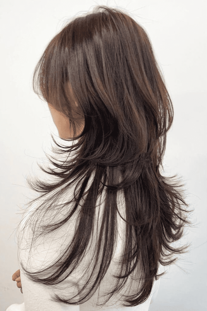 This soft and feminine hush cut with choppy layers and ends is ideal for adding movement and dimension to long hair. It delivers a textured, voluminous look that’s both stylish and effortless. If you want to refresh your long hair without losing length, this hush cut is an excellent choice.