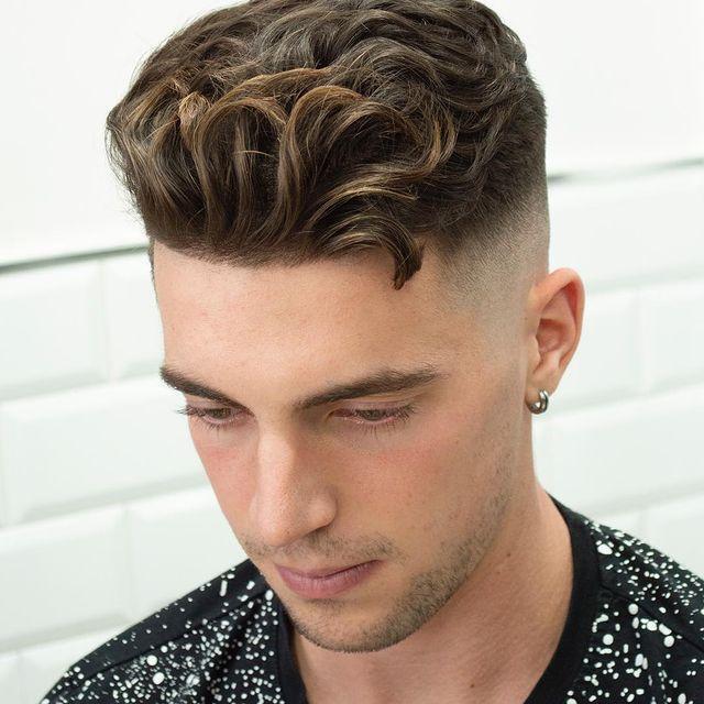 This textured quiff is a bold statement of style. Short sides contrast with a voluminous top, styled into a confident quiff. Perfect for the fashion-forward man who wants to turn heads.