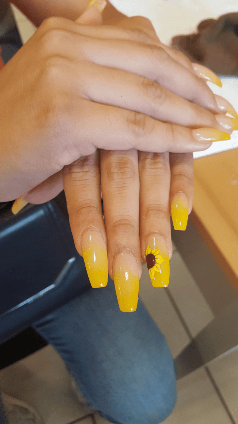 YELLOW OMBRE NAILS WITH FLORAL TIPS
