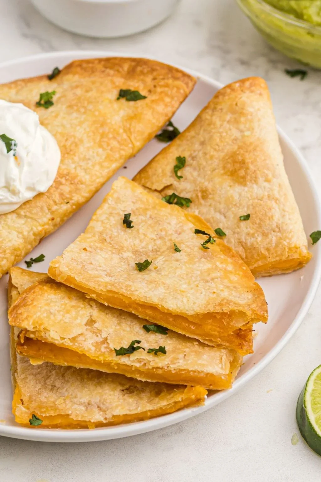 Air Fryer Quesadillas make for a quick and easy meal on busy weeknights. They come out perfectly crispy on the outside, while the inside stays delightfully gooey with melted cheese.
