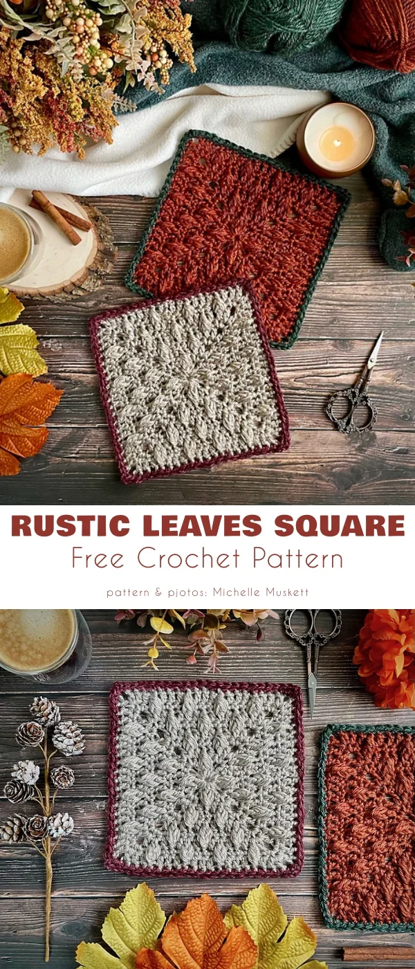 And here is an idea for a square blanket i autumn colors. You can use the pattern to make a standalone square as well.