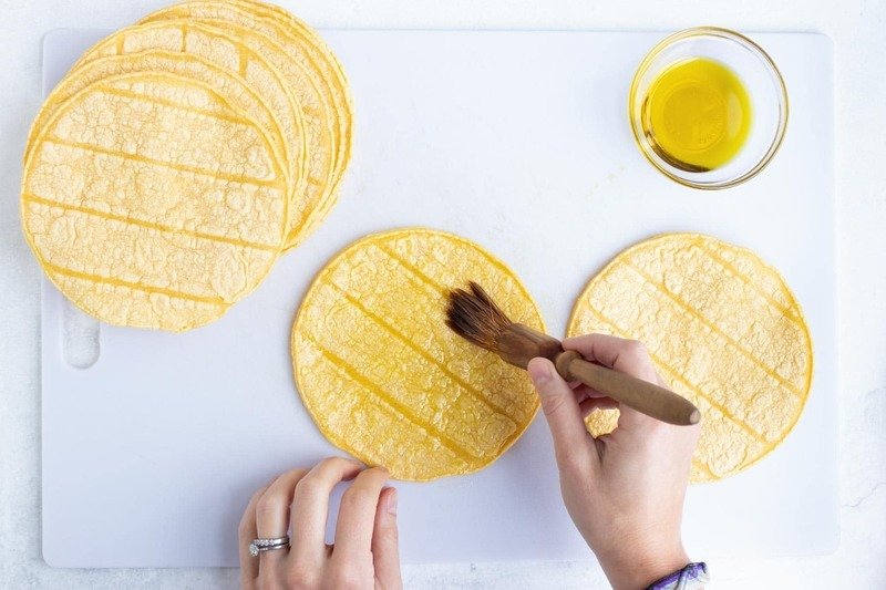 BRUSH THE CORN TORTILLAS WITH OIL