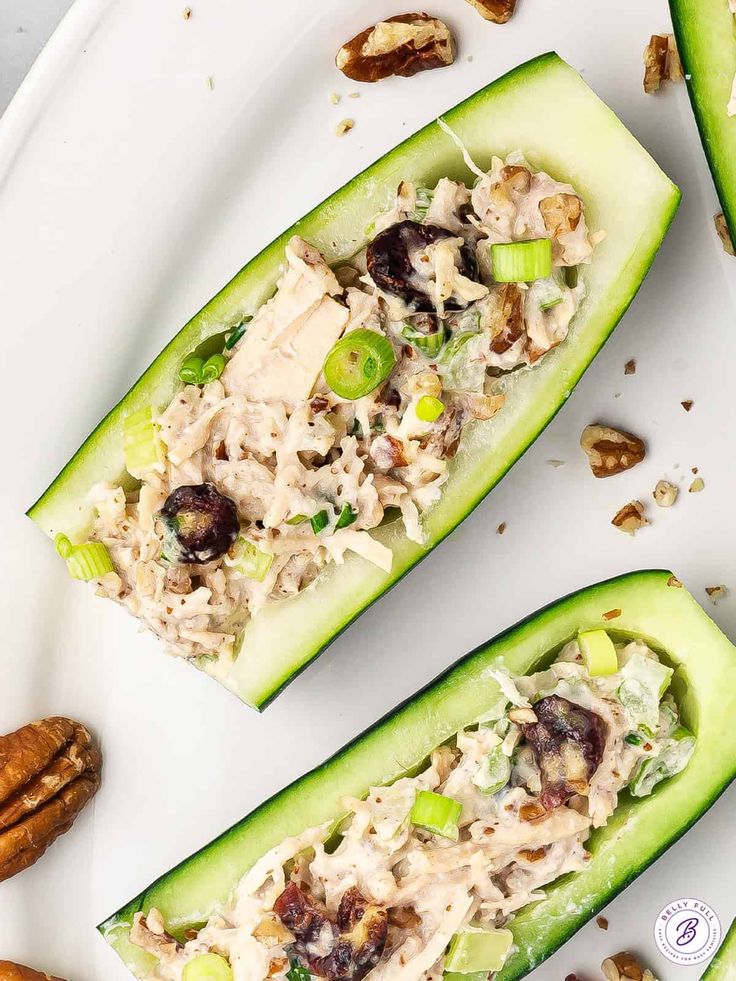 • Evenly fill each cucumber boat with the chicken salad mixture.