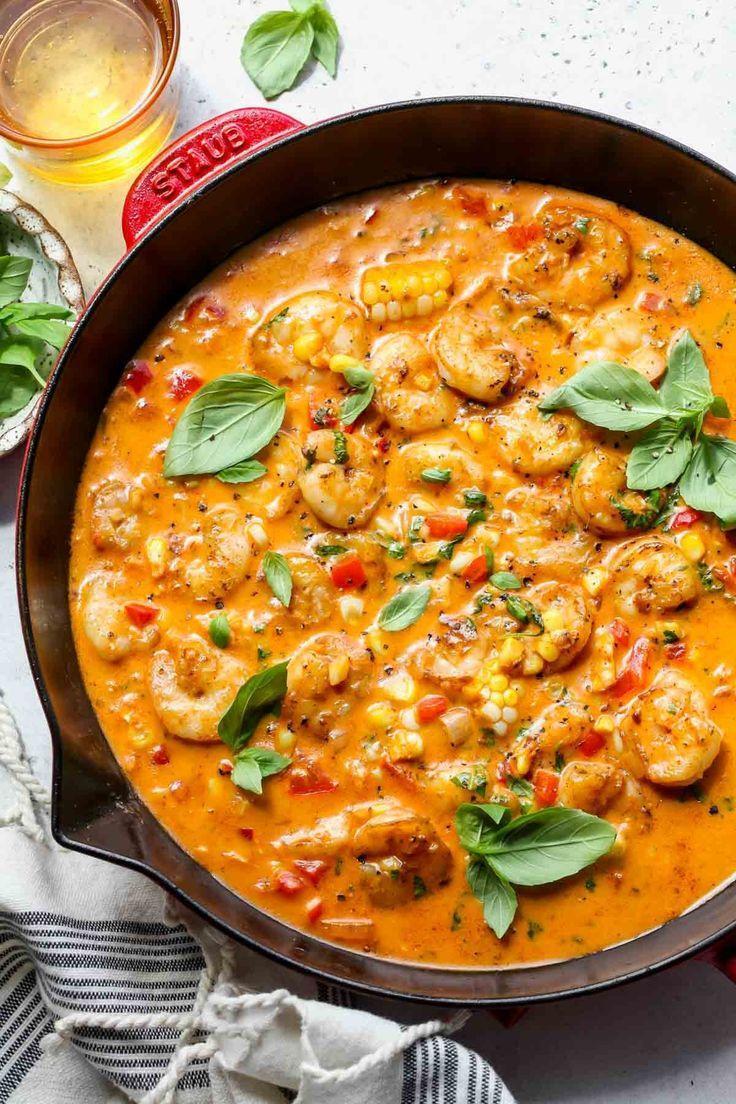 • Add the shrimp and cook for 4-7 minutes, or until they turn pink and are fully cooked. Top with more fresh basil and adjust seasoning to taste before serving.