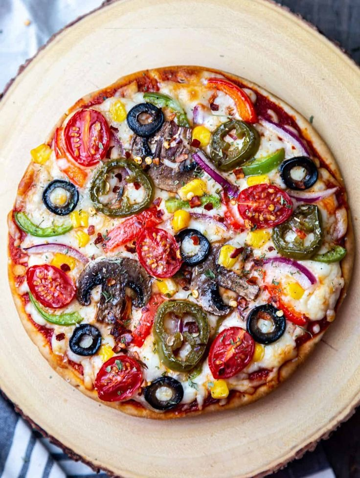 Veggie Pita Bread Pizza is a quick and effortless way to enjoy homemade pizza using pita bread as the crust, a simple no-cook sauce, and your favorite toppings. Ready in just 30 minutes—faster than takeout—and completely customizable to suit your taste!