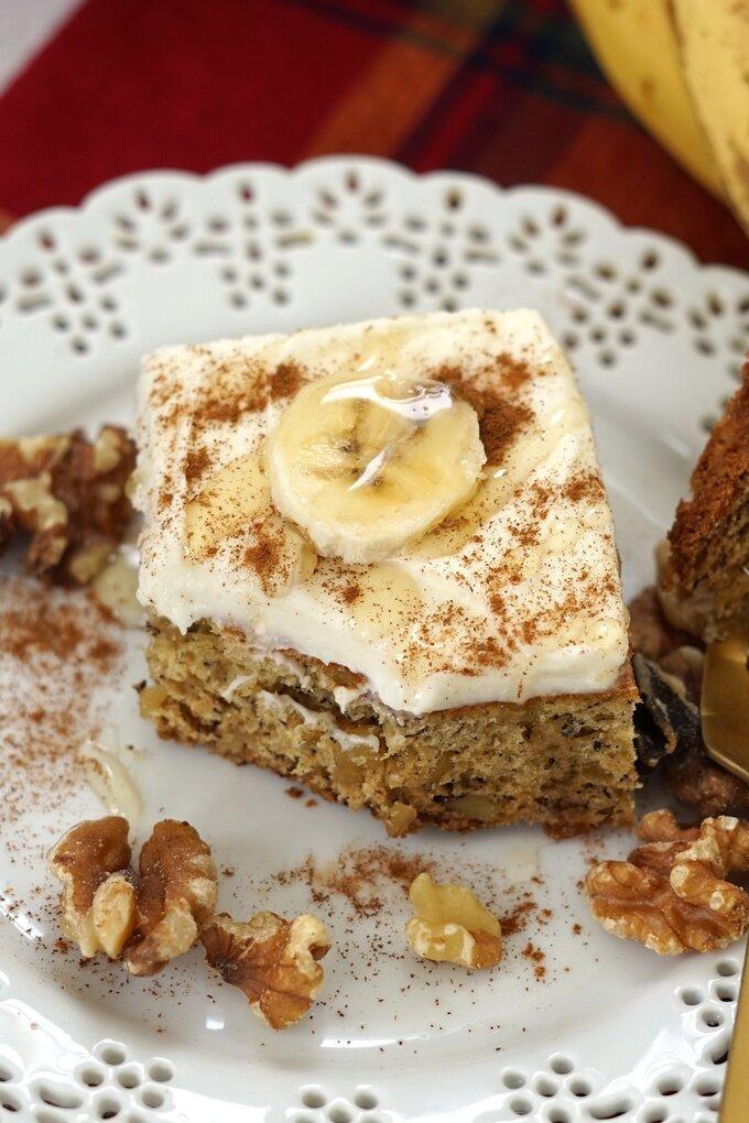 Banana Cake – This easy sheet cake version of a classic banana cake is the perfect dessert to use up ...