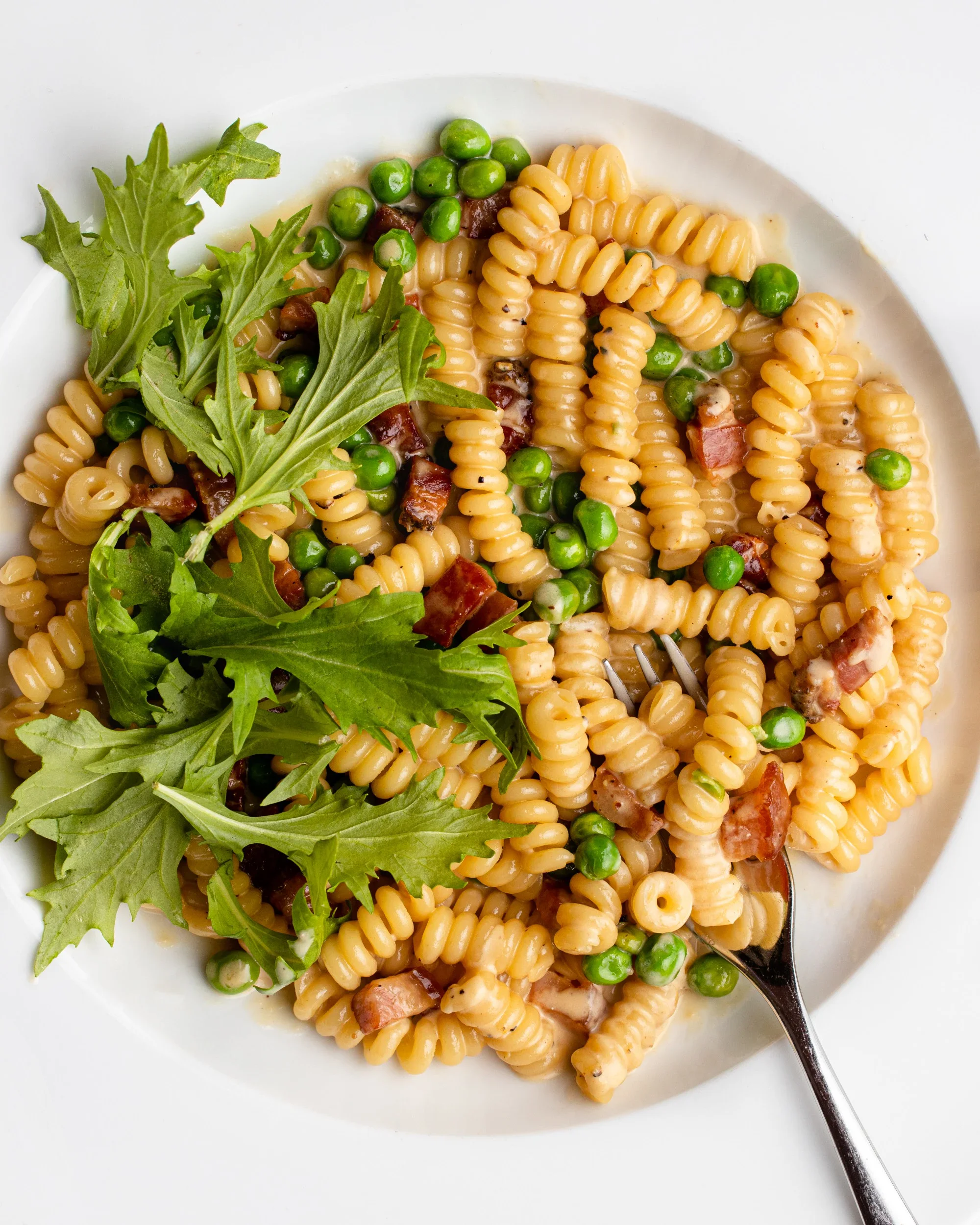 CREAMY PASTA WITH PEAS AND PANCETTA