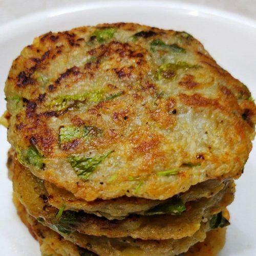 Falahari Cheela is a delicious snack made from a mixture of grated potatoes, green chilies, coriander leaves, and a few ...