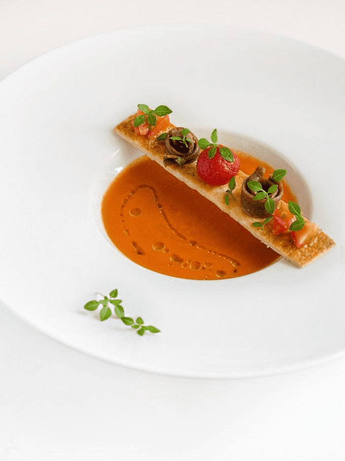 GAZPACHO OF PIQUILLO PEPPERS WITH MARINATED TOMATOES
