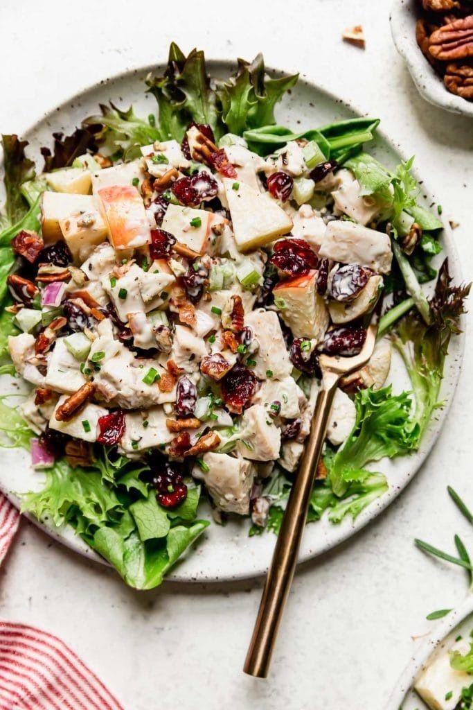 This easy and healthy chicken salad with cranberries and pecans is packed with flavor and perfect for serving over lettuce, ...
