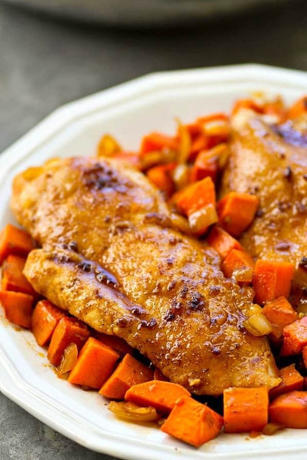 SKILLET MAPLE GLAZED CHICKEN WITH SWEET POTATO HASH