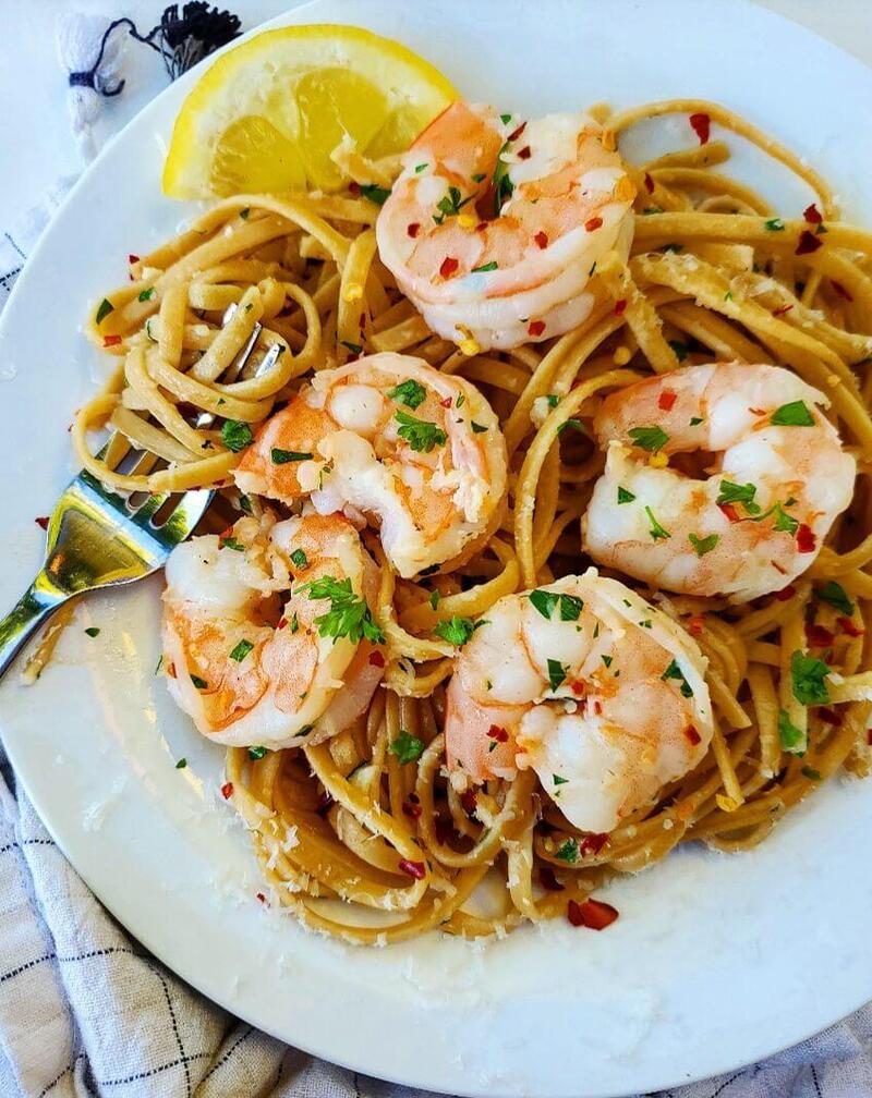 LOW CALORIE SHRIMP SCAMPI PASTA