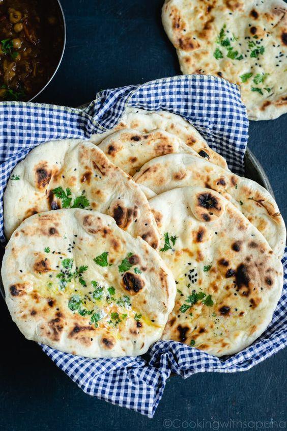 Here’s how to make naan! This homemade garlic naan is cooked in a hot cast iron skillet, giving it a ...