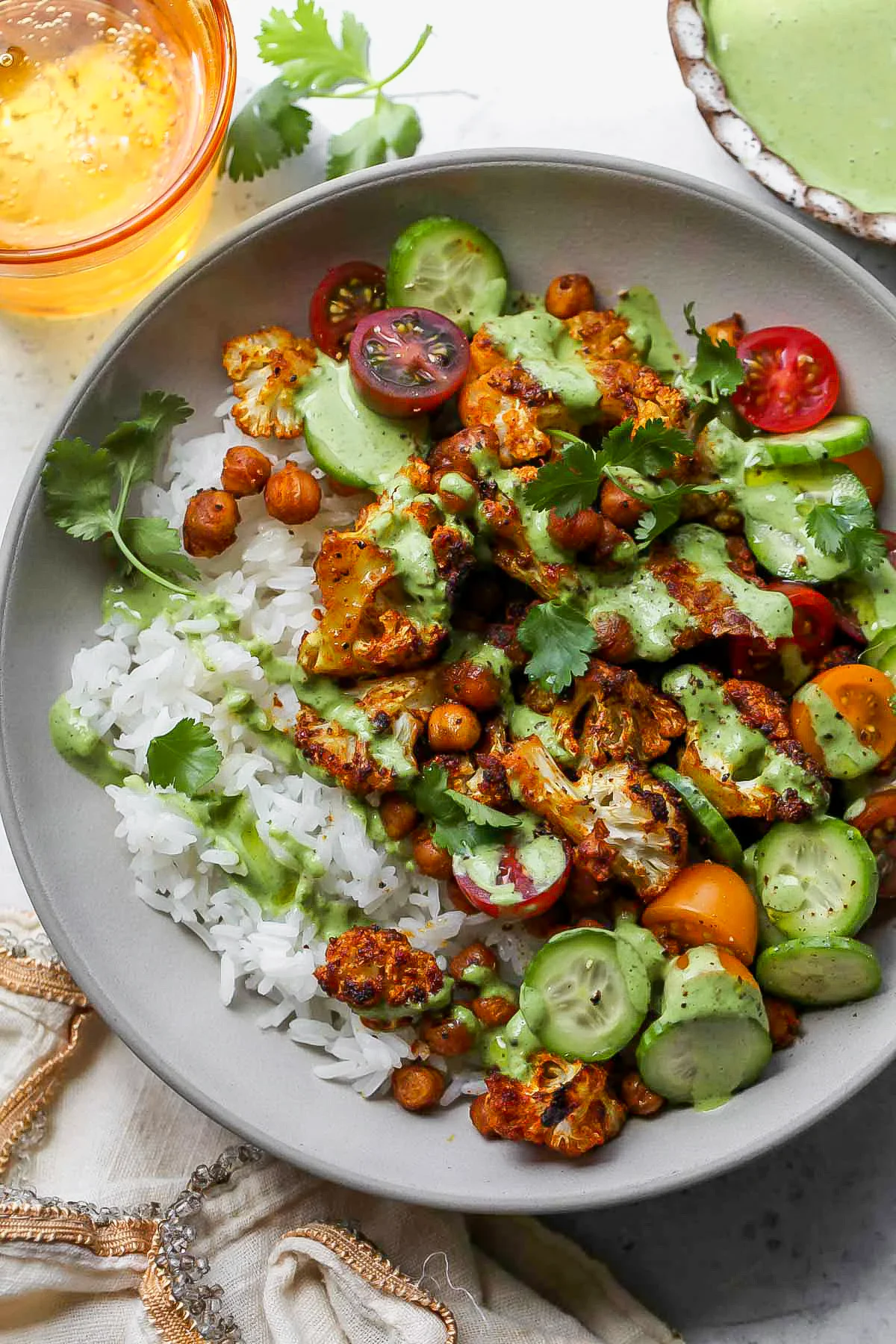 These Vegan and Gluten-Free Cauliflower Shawarma Bowls feature crispy chickpeas, basmati rice, and a vibrant Green Tahini Sauce, making them ...
