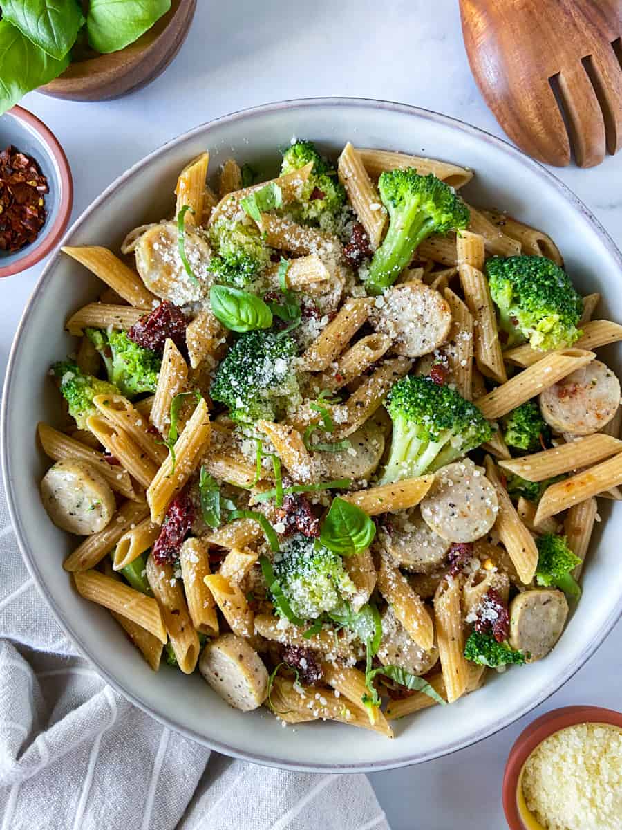 CHICKEN SAUSAGE PASTA WITH BROCCOLI