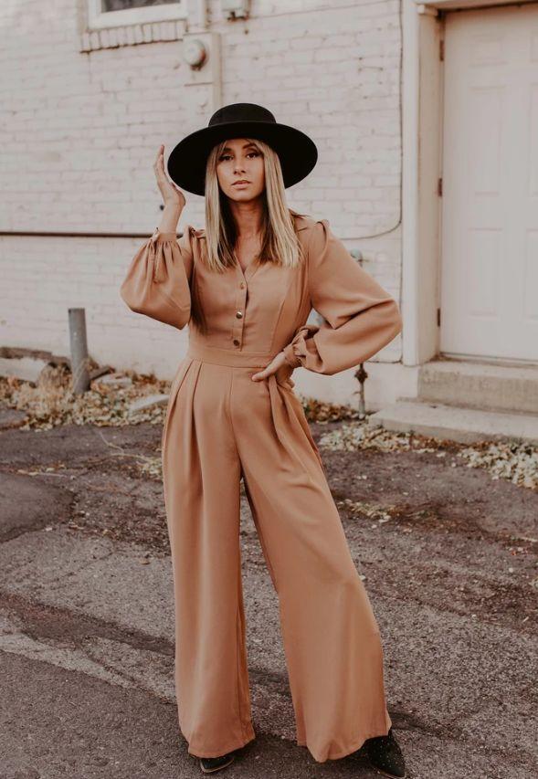 A jumpsuit in a warm terracotta hue is a bold yet refined choice for spring. With playful ruffles and button details, it adds a unique touch to your wardrobe, making it a standout piece. Perfect for a business casual interview or a coffee date with friends, this one-and-done outfit offers both practicality and effortless chic style.