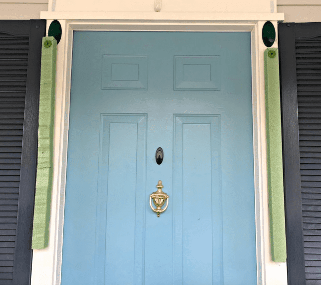 Here’s how my two pieces of styrofoam look, hanging on either side of my front door.