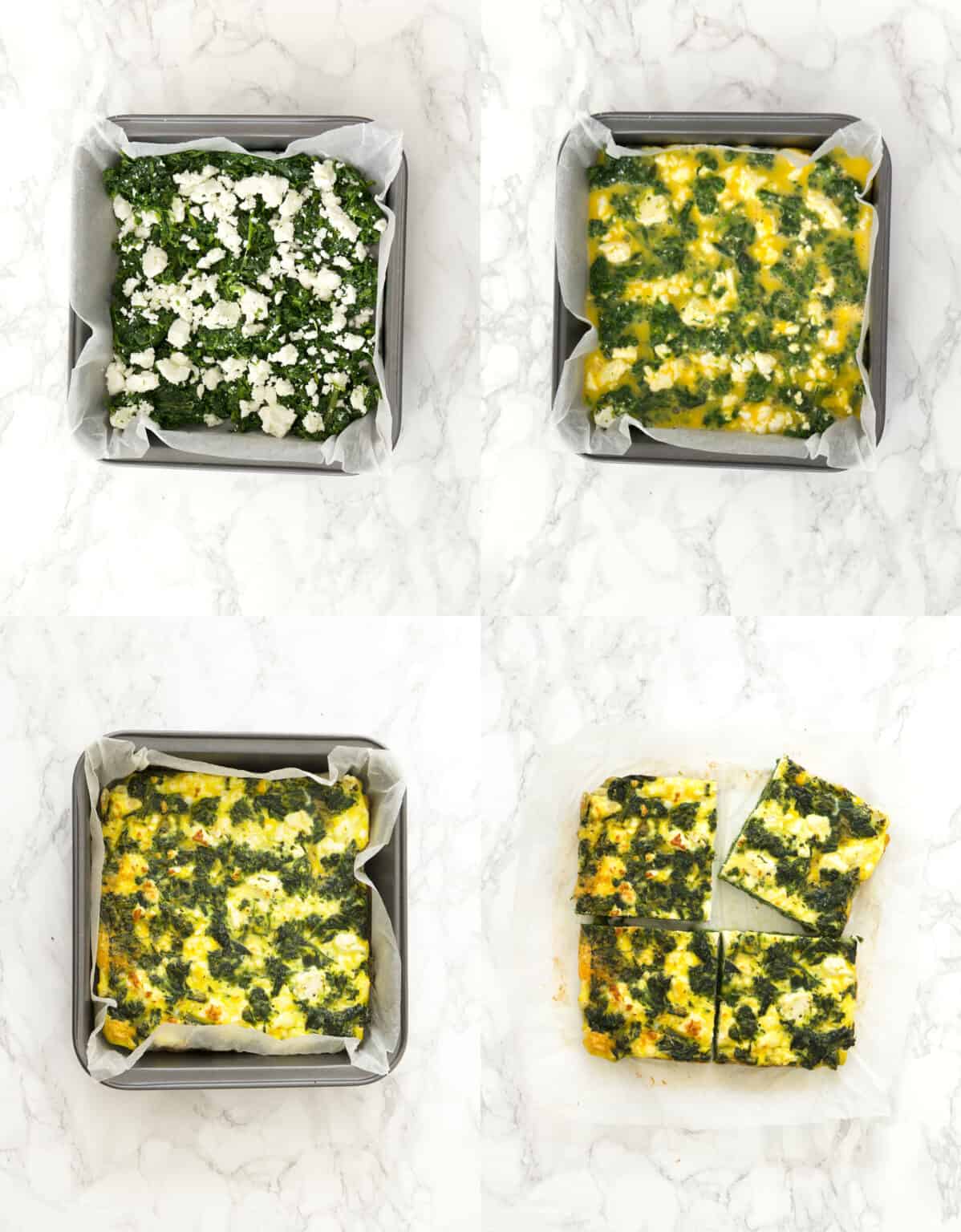 Spread the spinach and crumbled feta evenly in the prepared baking dish. Pour the egg mixture over the top, ensuring it spreads evenly.