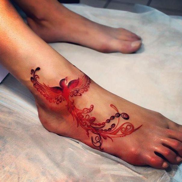 The phoenix, a mythical bird, carries powerful symbolism of rebirth, death, and renewal. Known for cyclically regenerating from its ashes, it serves as a metaphor for facing struggles and emerging stronger. Alternatively, it symbolizes hope and perseverance. Ideal for a woman navigating challenges or significant life changes, phoenix tattoos, especially in vibrant colors to represent fire, can be a meaningful and beautiful choice for the foot.
