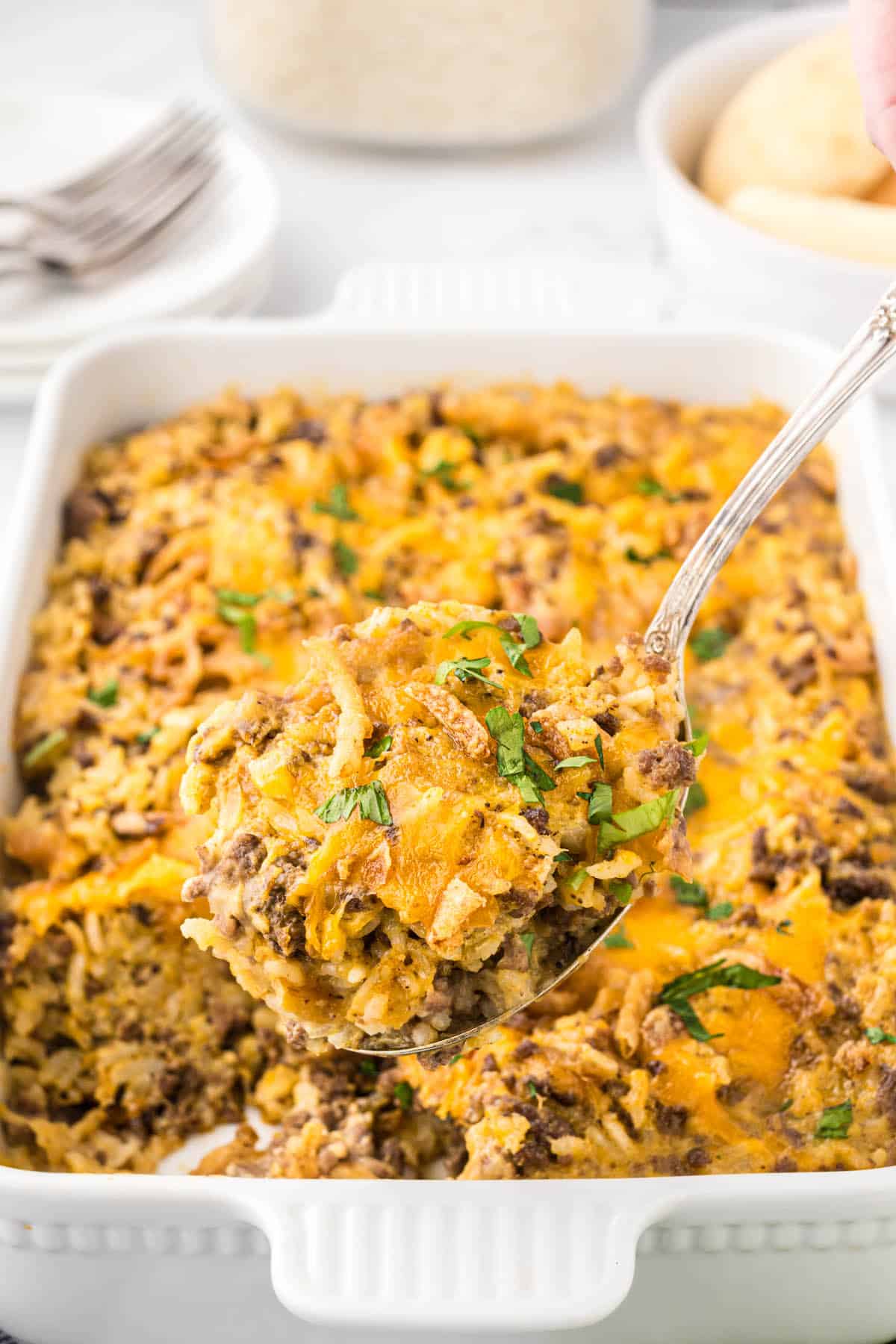 GROUND BEEF AND RICE CASSEROLE
