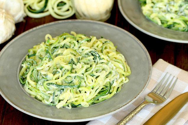 - Heat a large skillet over medium-high heat and spray with nonstick cooking spray. Add the spiralized zucchini and sauté for about 3 minutes until hot and slightly softened.