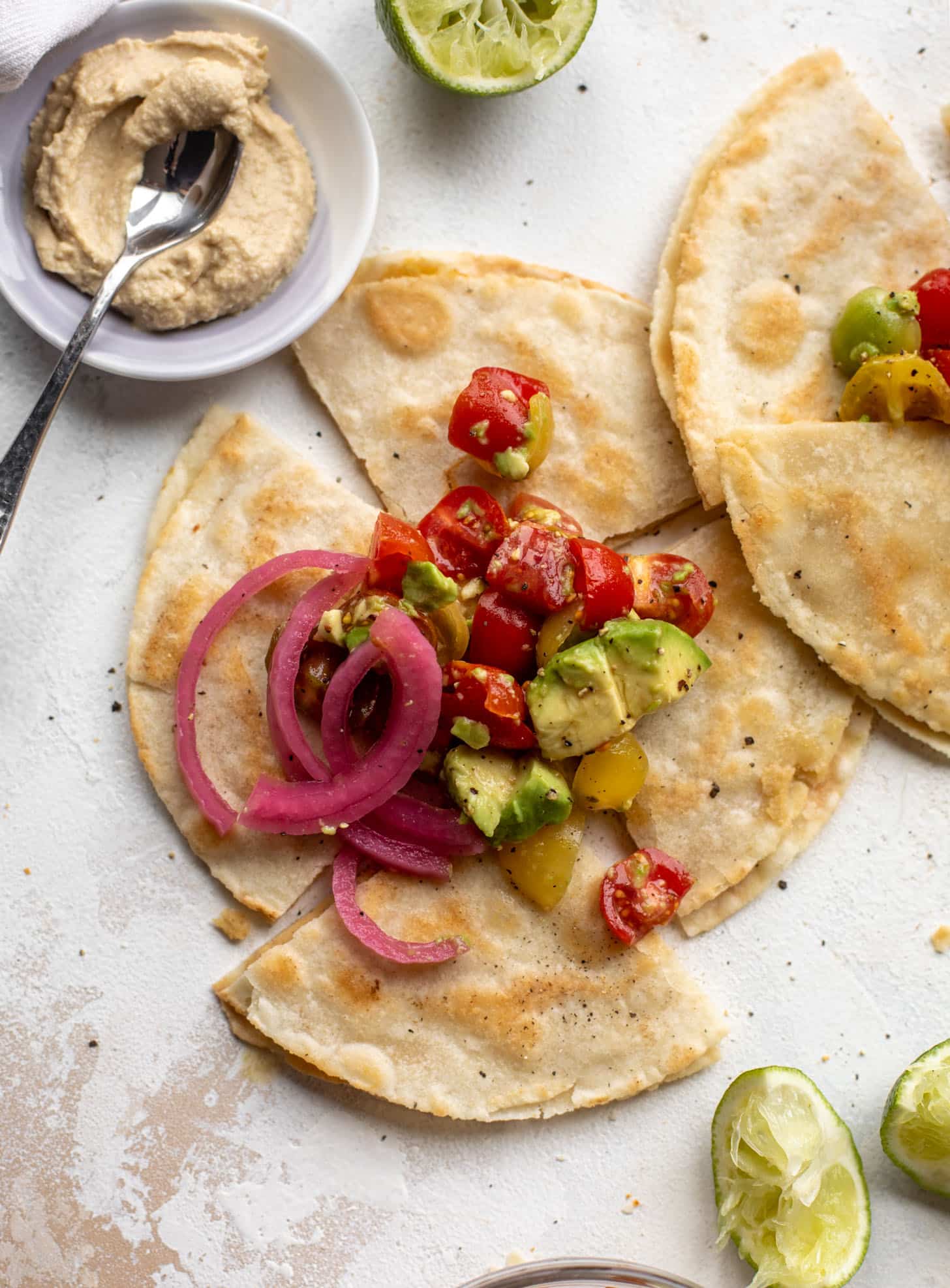 AVOCADO AND HUMMUS QUESADILLAS