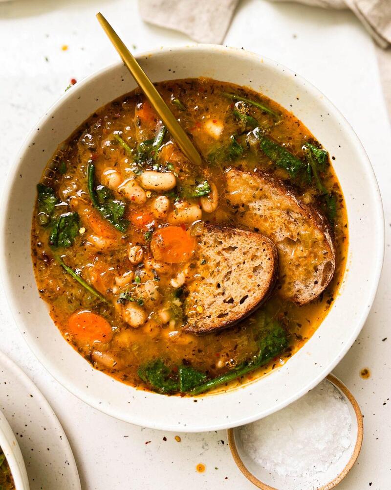 Packed with herbs, shallots, garlic, beans, and all the comforting flavors you crave in the winter, this vegetarian soup is as satisfying as it is delicious.