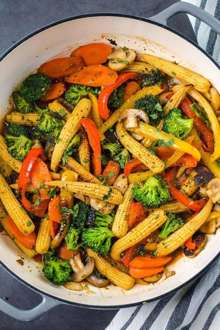 - Pour the sauce over the cooked vegetables and toss to coat. Bring the mixture to a simmer and cook for another 5 minutes, until the sauce thickens and the vegetables are tender.