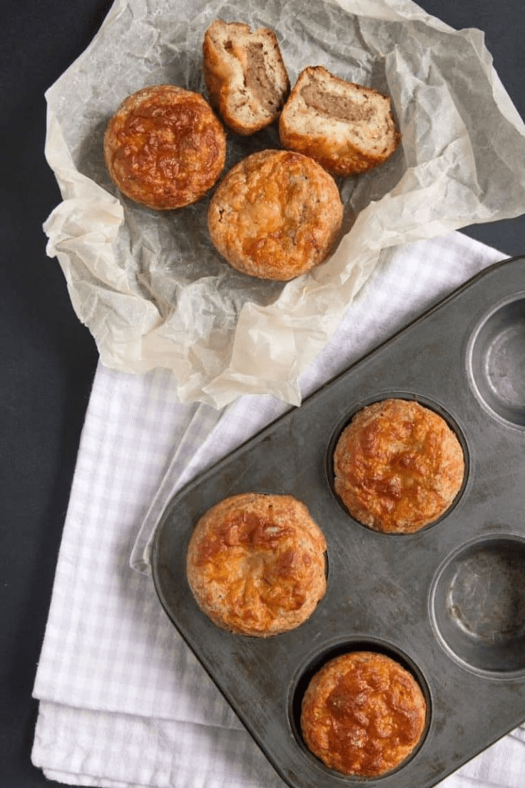 • Place the filled biscuits into the muffin tin and, if desired, sprinkle extra mozzarella on top.