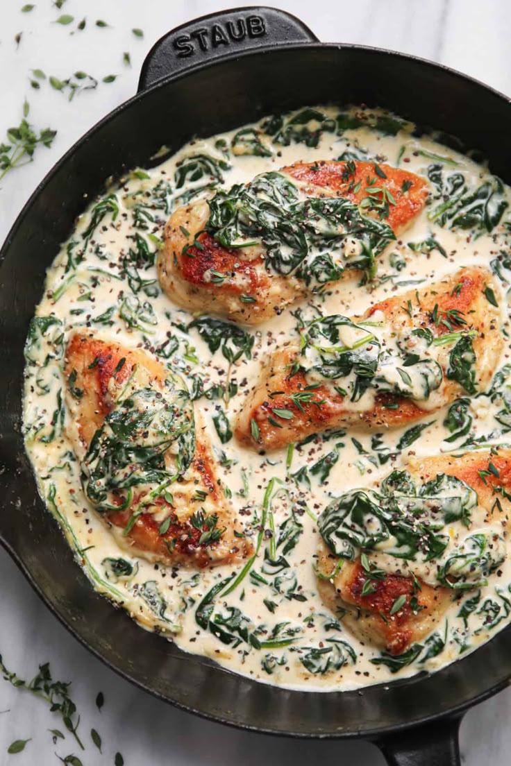 - Return the chicken to the crockpot, spooning the sauce, spinach, and sun-dried tomatoes over the top before serving.