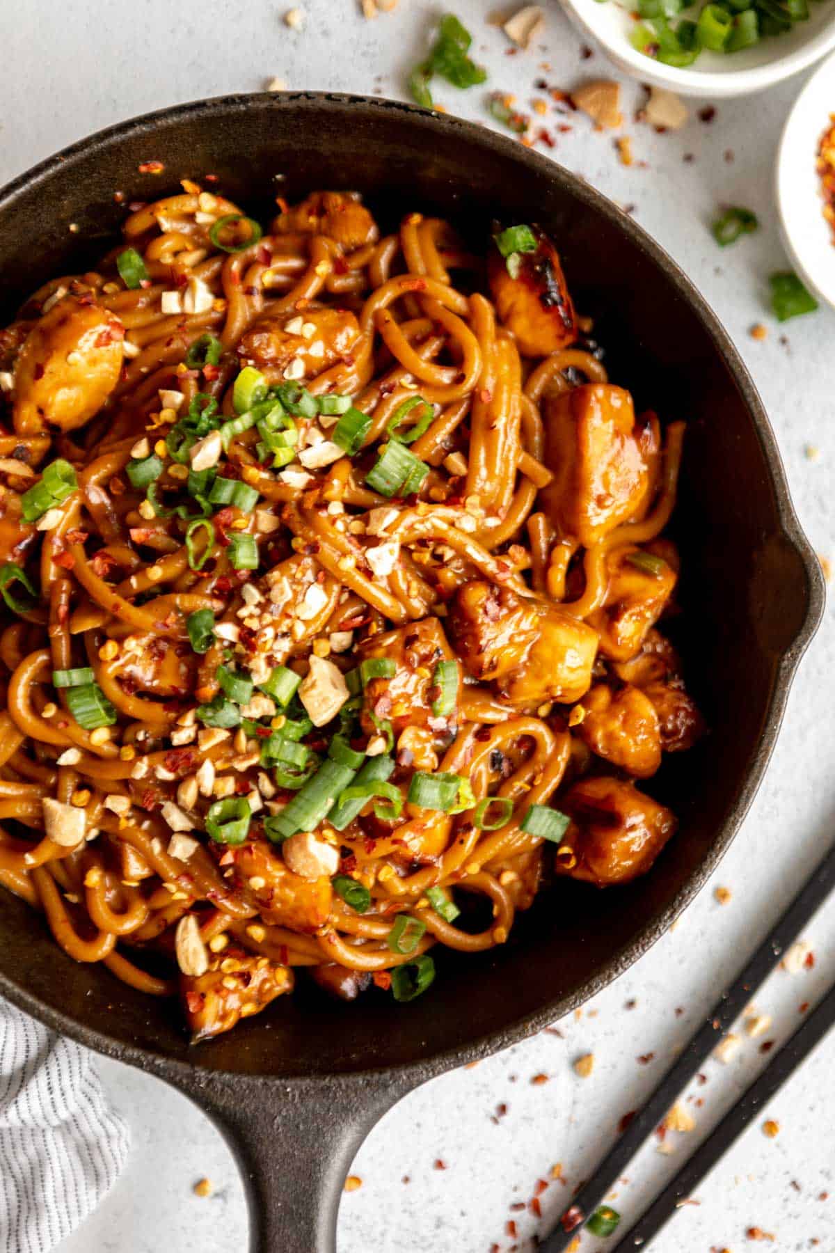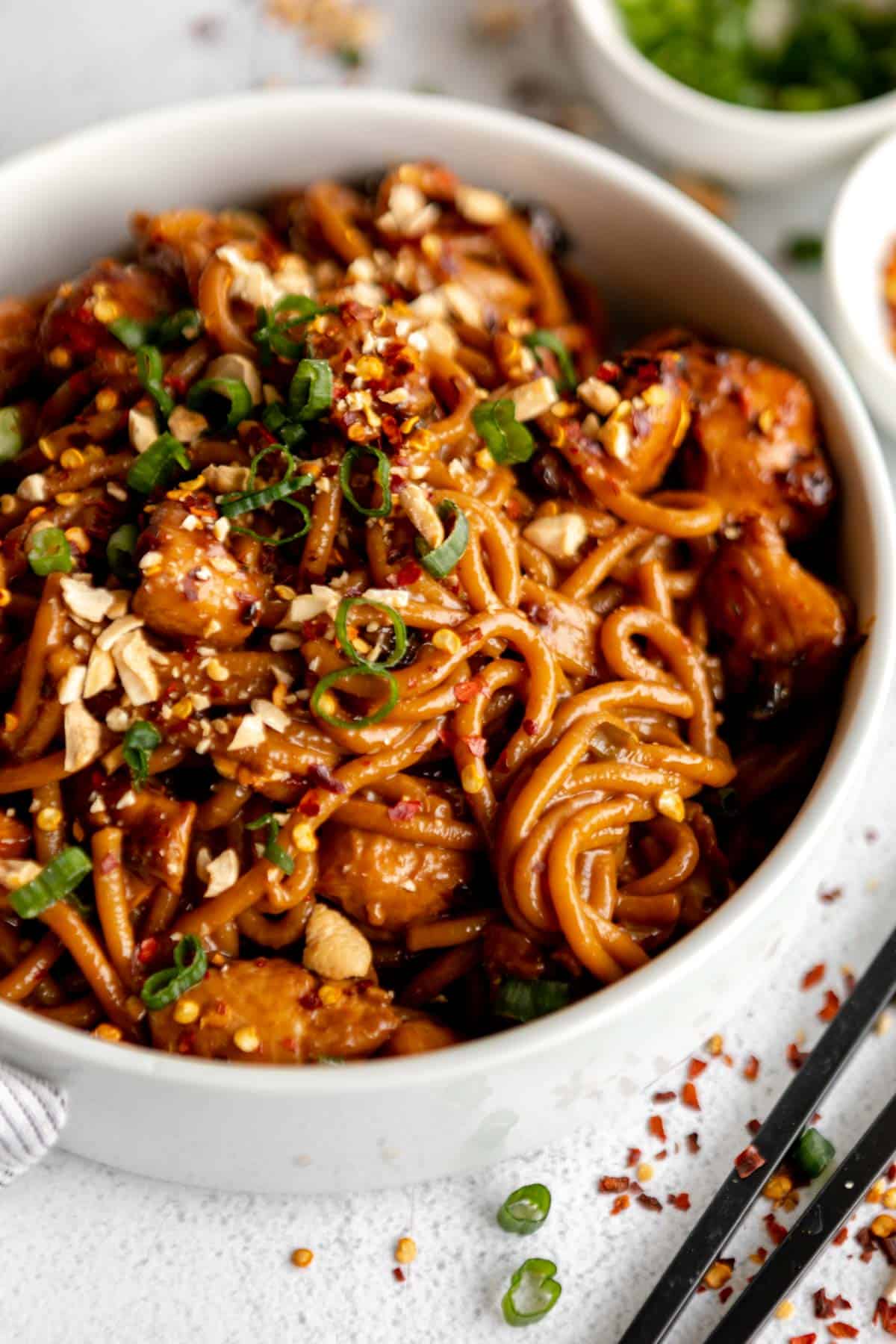 These Kung Pao chicken noodles are simple to prepare, bursting with flavor, and packed with a deliciously saucy kick—ideal for a quick weeknight meal. Ready in just about 30 minutes, this recipe is a beloved family favorite.