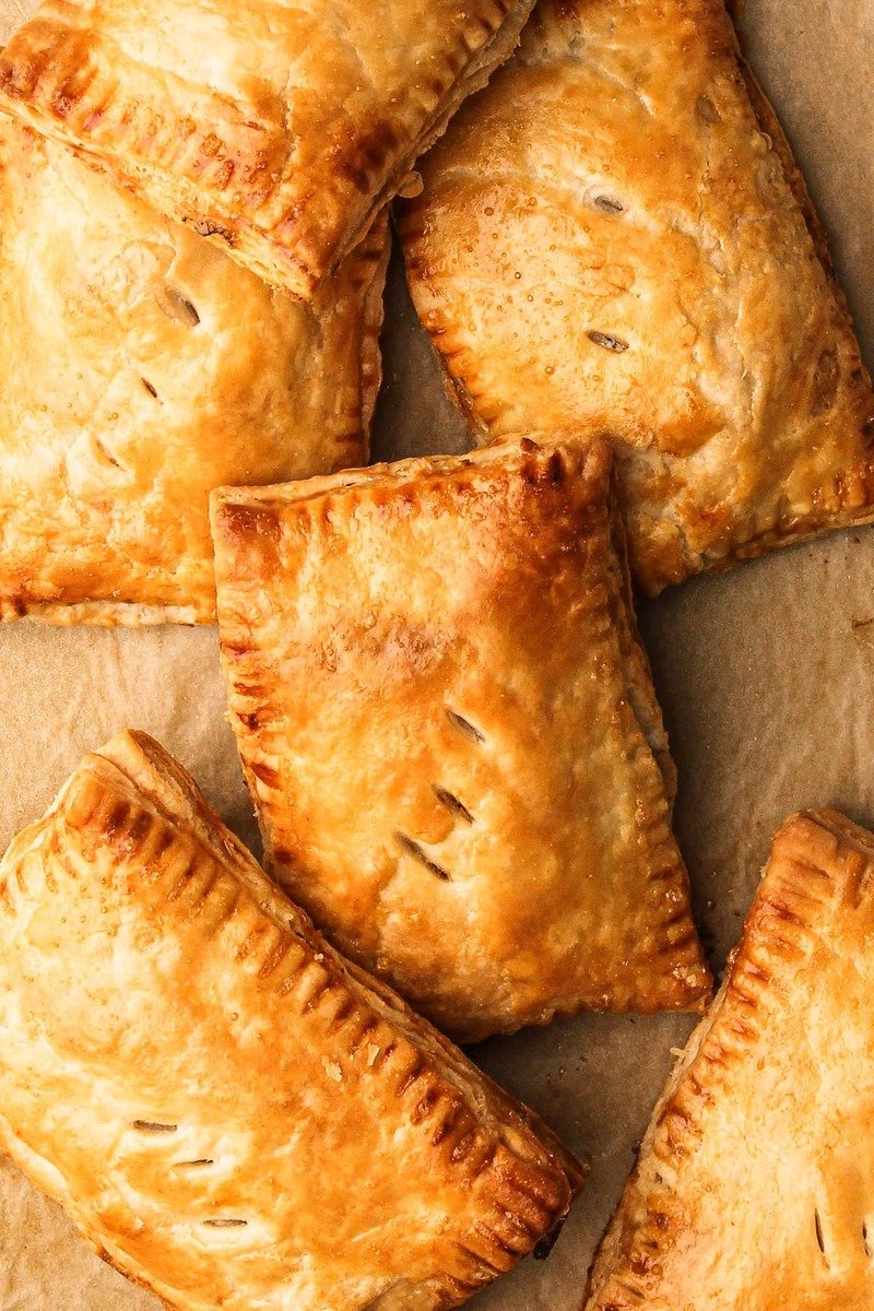 - Once the oven is ready, brush the tops of the pies with the remaining egg wash. Bake for 35 minutes or until golden brown.