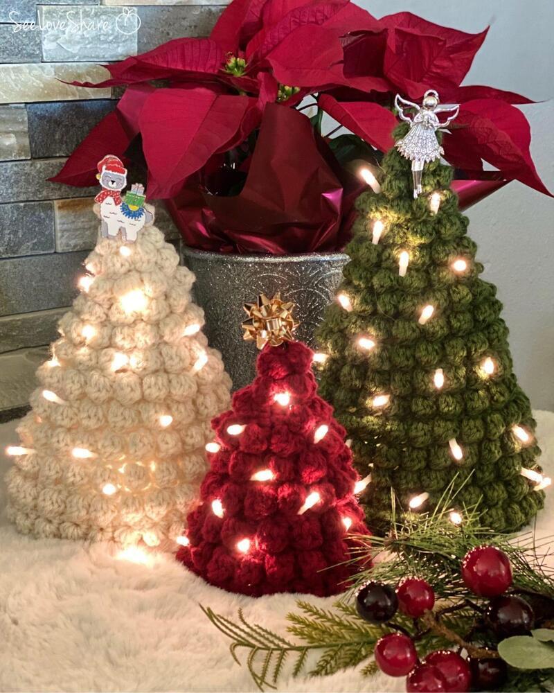 BOBBLE STITCH CHRISTMAS TREE TRIO – FREE CROCHET PATTERN BY ASHLEIGH OF SEELOVESHARE