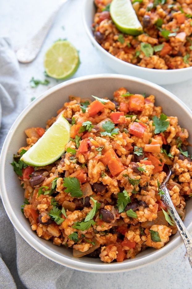 This Mexican Fried Rice & Ground Turkey Bowl is a flavorful, protein-packed twist on classic restaurant-style Mexican rice! Made with black beans, salsa, bell peppers, and tomatoes, it’s a nutritious and delicious way to use up leftover cooked rice. Perfect for a quick and easy weeknight dinner!
