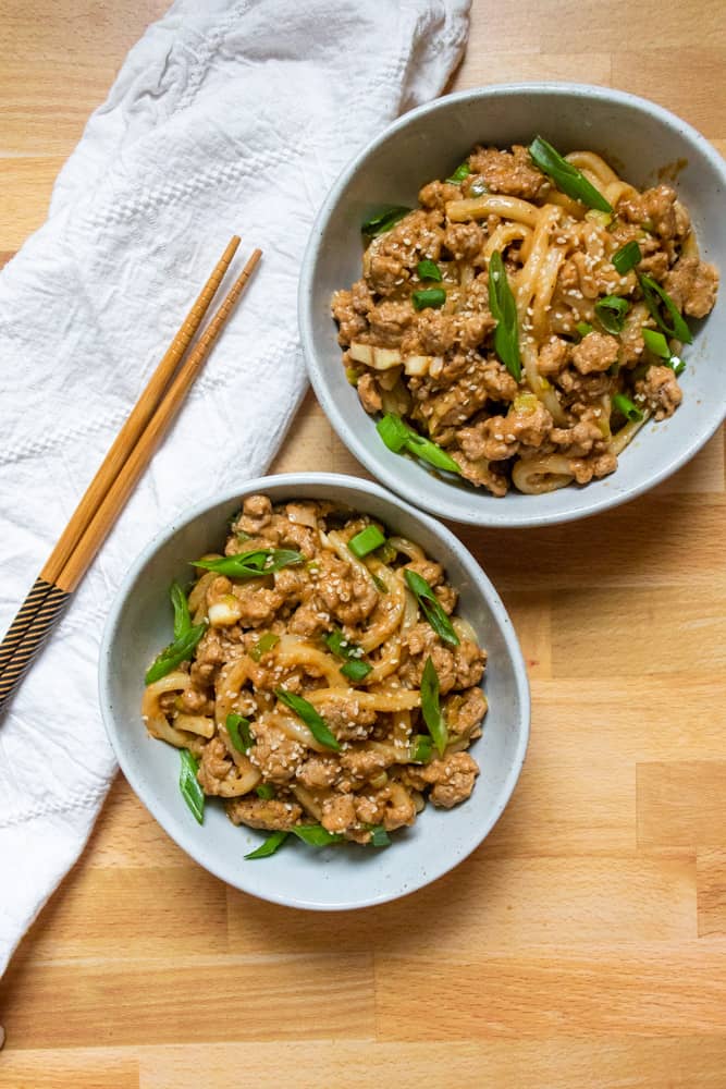 PEANUT GARLIC UDON STIR FRY (WITH PALEO & VEGAN OPTIONS)