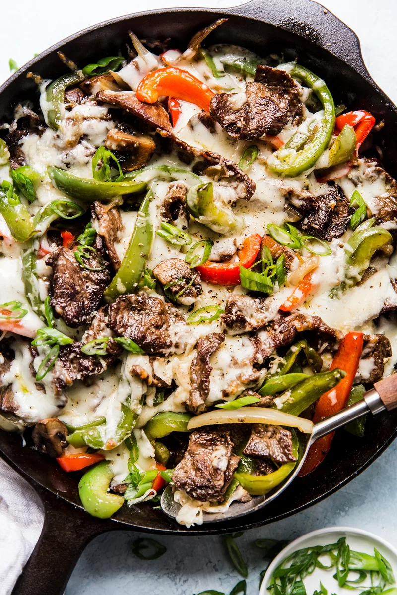 • Arrange the provolone slices over the beef mixture and place the skillet under the broiler for 3–4 minutes, or until the cheese is melted to your liking.