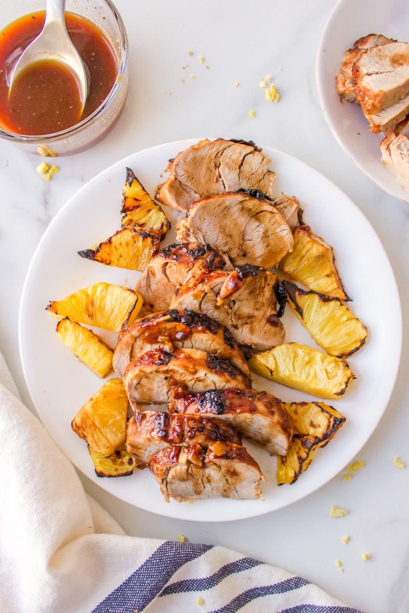 - Serve the sliced pork tenderloin with the grilled pineapple and drizzle with the sauce.
