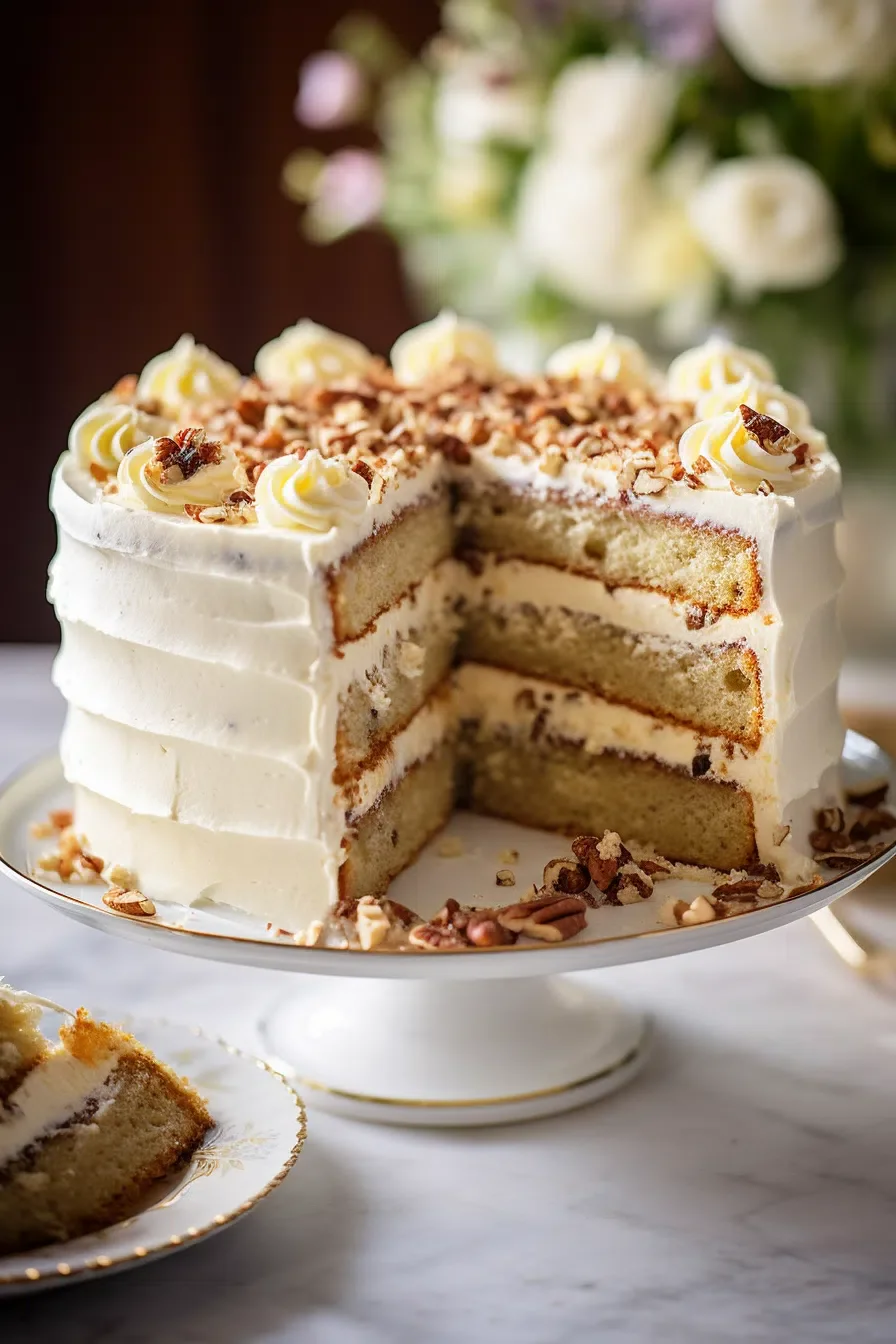 - For the frosting, beat the cream cheese and butter together in a bowl at medium speed until smooth. Gradually add the powdered sugar and continue beating until fluffy. Stir in the vanilla extract and toasted pecans.