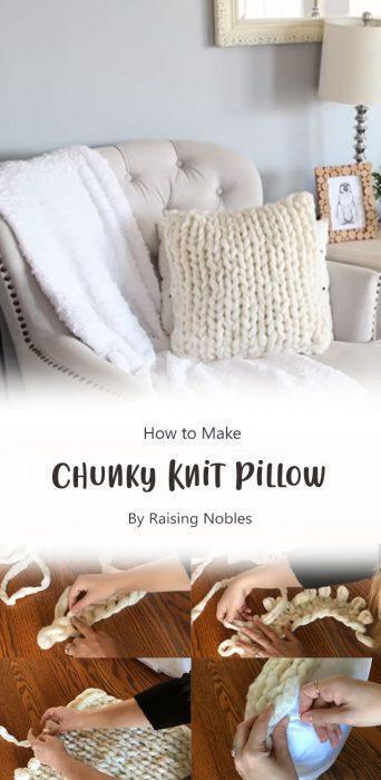 An excellent guide that teaches you how to create a chunky knit pillow, featuring easy-to-follow instructions that will help you craft your very own chunky knit pillow by Raising Nobles.