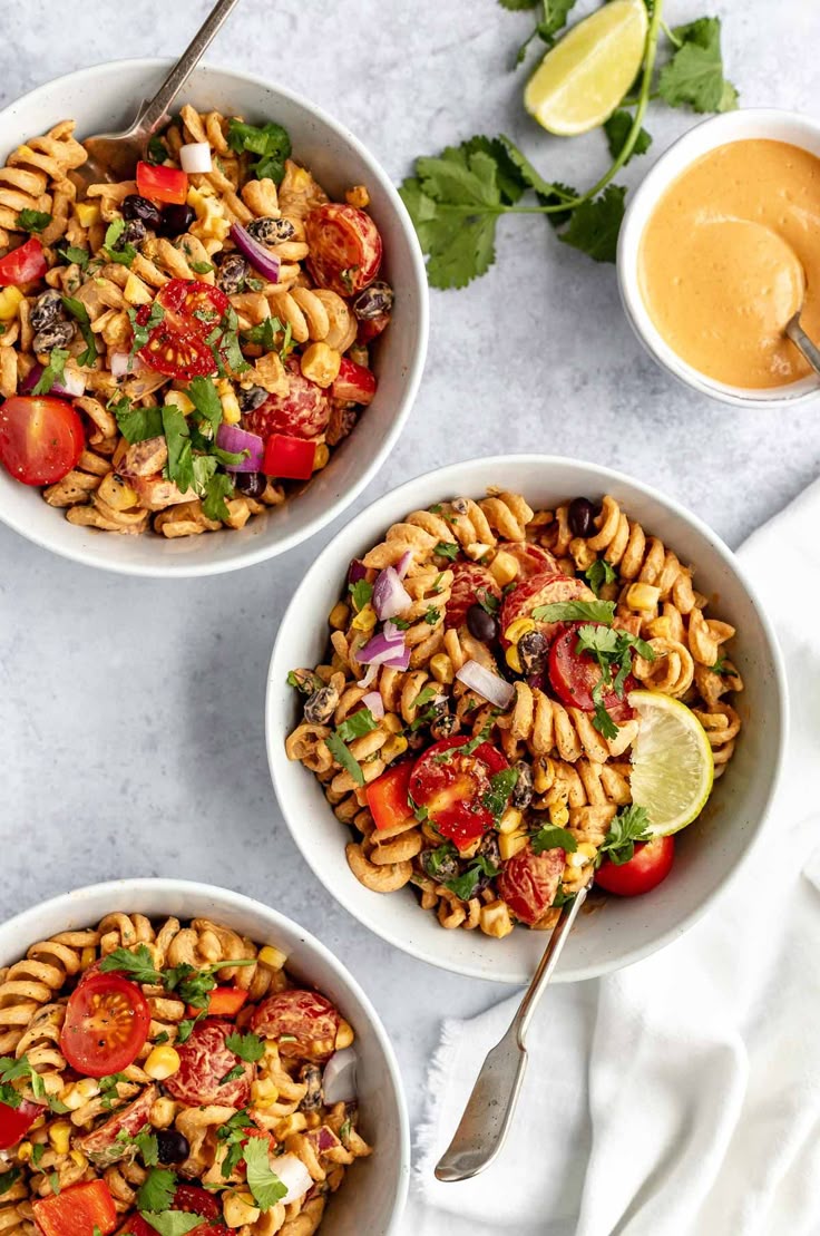 - Assemble the Salad: In a large bowl, combine the cooked pasta, black beans, tomatoes, pickled onions, green chiles, roasted corn, and cilantro.