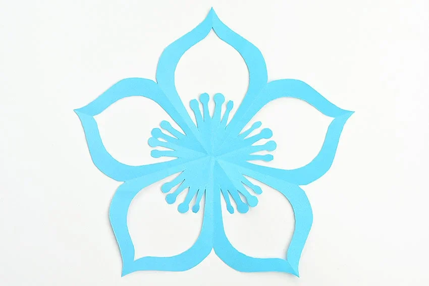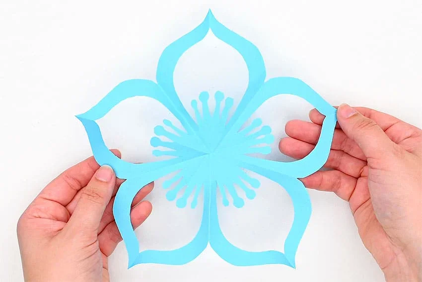 Unfold to Reveal Your Flower. Gently unfold the paper to reveal your stunning kirigami flower! Enjoy the intricate design and the beauty of your creation as it blooms before your eyes.