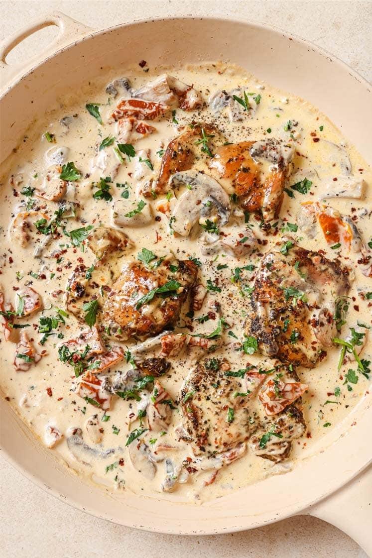 This Chicken with Creamy Mushroom Sauce is a flavorful one-pan dish that’s ready in just 30 minutes! Tender chicken thighs ...