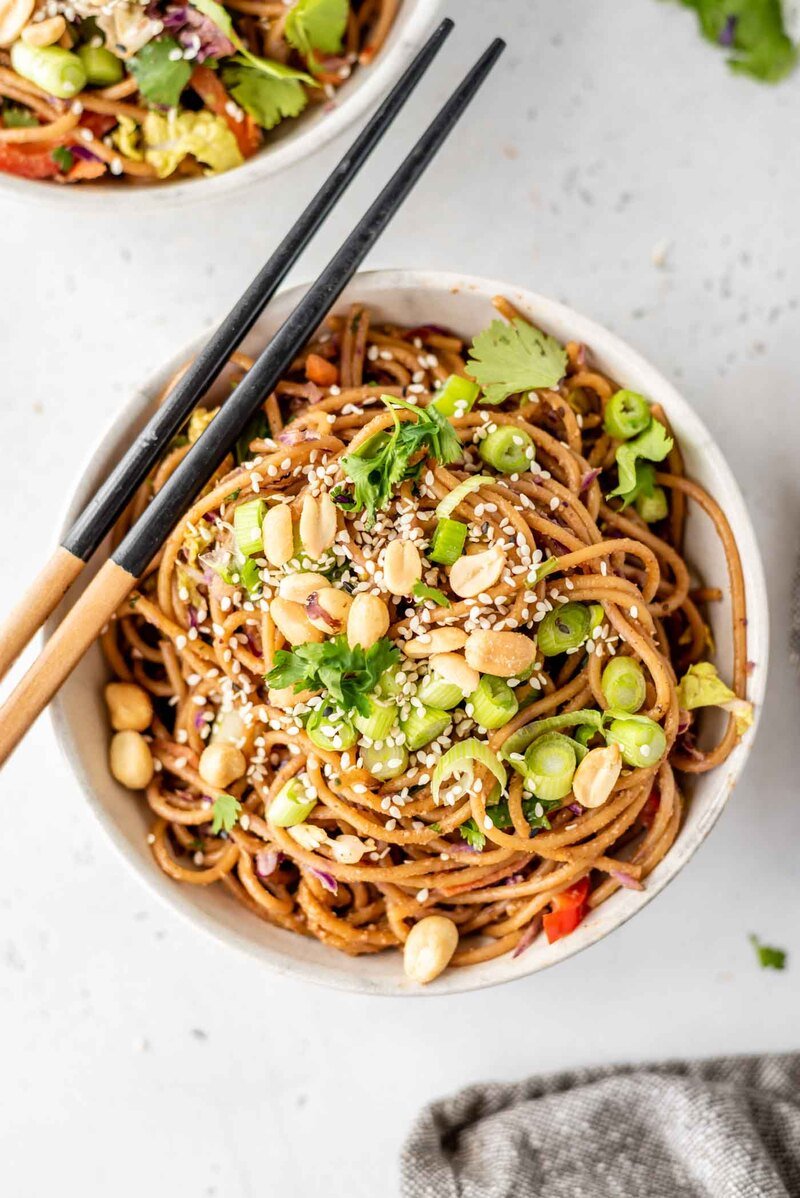 This delicious vegan cold Asian noodle salad with a spicy peanut dressing is quick and easy to make in under ...