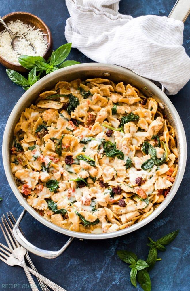 ONE POT CREAMY SUN DRIED TOMATO AND SPINACH PASTA WITH CHICKEN