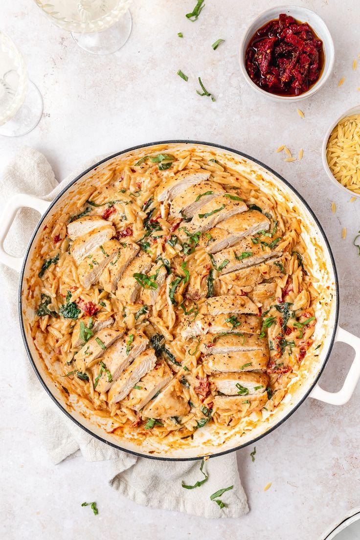 Creamy Tuscan Chicken Orzo is an Italian-inspired dinner that’s as comforting as it is delicious. Tender, seared chicken is simmered ...