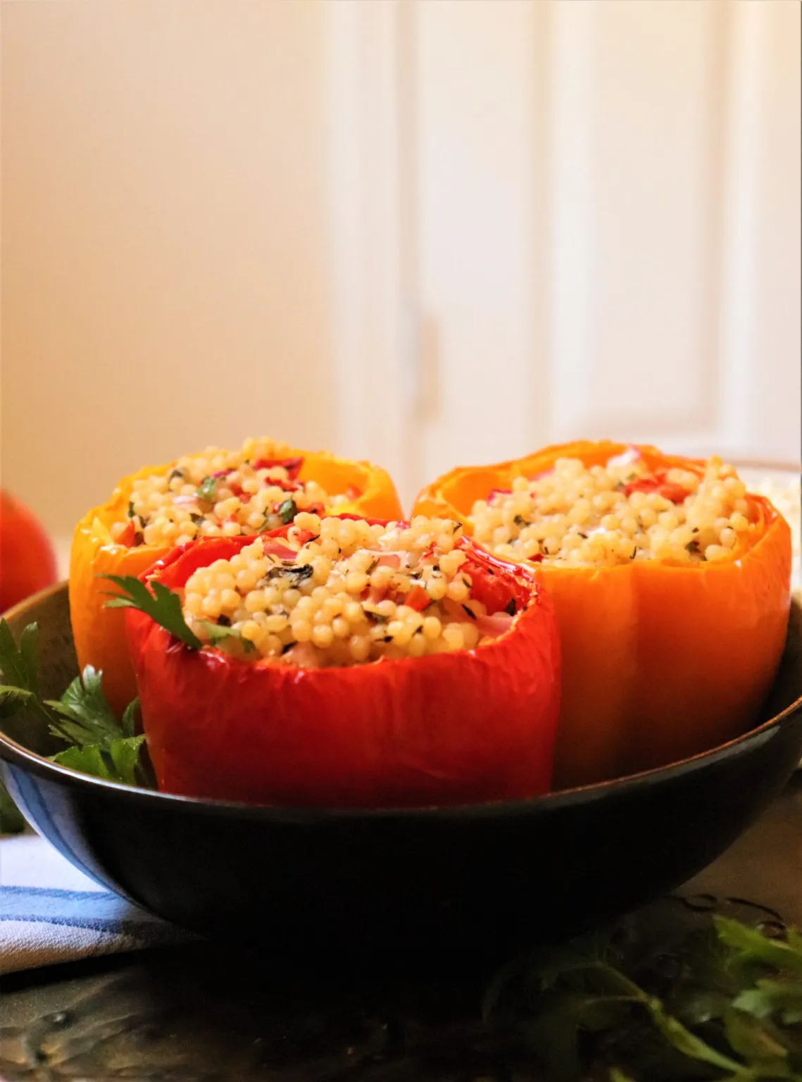 VEGETARIAN STUFFED BELL PEPPERS WITH ISRAELI COUSCOUS