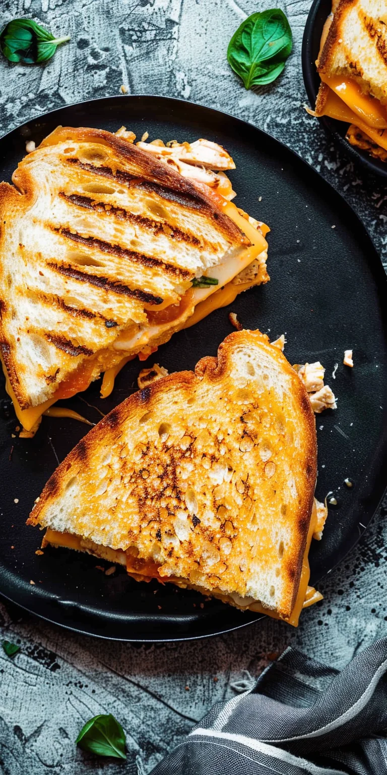 The Grilled Chicken Three-Cheese Sandwich offers a mouthwatering combination of tender grilled chicken breast, gooey melted cheeses, and crispy, golden ...