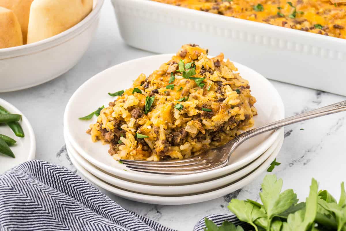 This Cheesy Ground Beef and Rice Casserole, made with seasoned ground beef, rice, and a creamy sauce, is the perfect ...