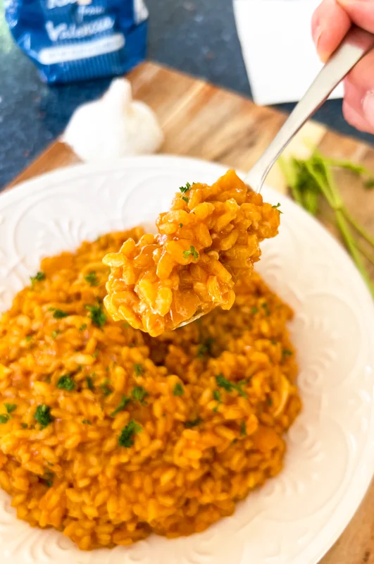 This Creamy Paprika and Garlic Rice, or Arroz Meloso con Ajo y Pimentón, is truly one of the most delicious ...